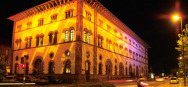 The Fruchthalle is a beautiful concert and banqueting hall in the center of Kaiserslautern. Its style reminds of the Florentine patrician palaces of Early Renaissance.