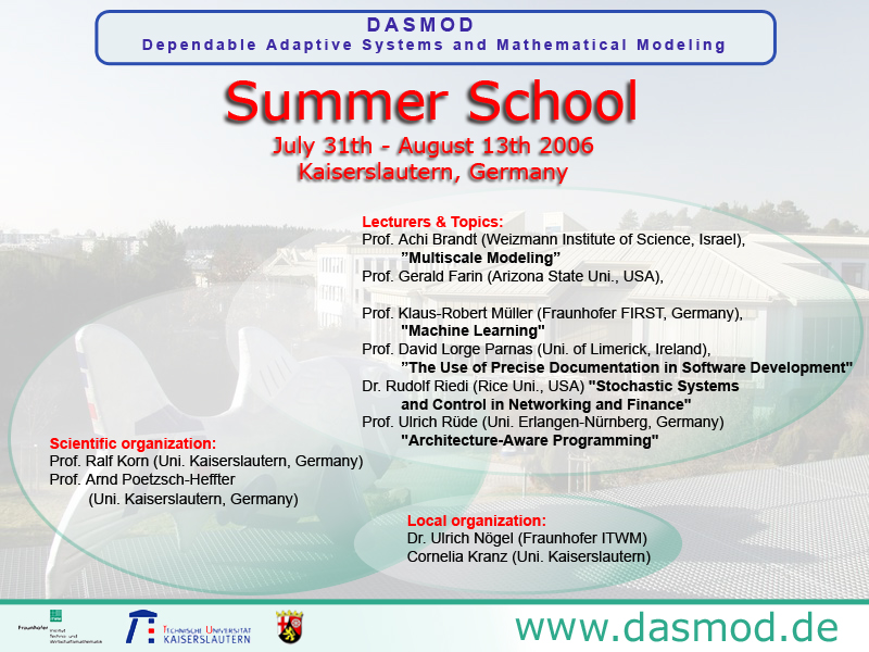 The Rheinland-Pfalz Cluster of Excellence "Dependable Adaptive Systems and Mathematical Modeling" successfully conducted its First Summer school for excellent graduate and PhD students in mathematics and computer science in Kaiserslautern.